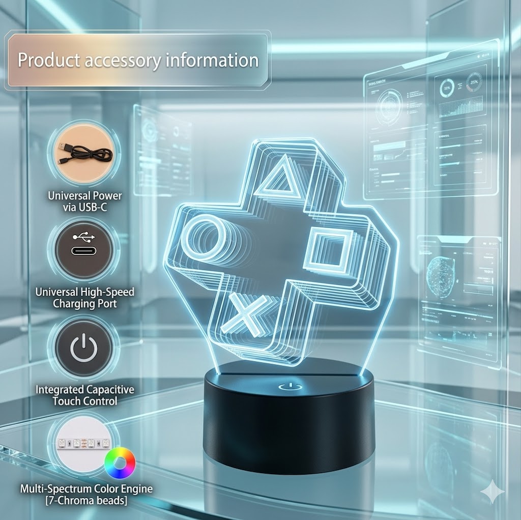 Level Up Your Room: The Ultimate Gamer’s Atmosphere Light. Transform your gaming station or bedroom into a professional esports arena. Our 3D Gaming Button Night Light features the iconic cross and symbol buttons that every gamer knows and loves. Using an optical acrylic plate with laser engraving, it creates a stunning 3D visual effect that adds depth and personality to your space. Whether you’re streaming on Twitch, grinding through a campaign, or just relaxing, this LED lamp provides the perfect neon-style glow to immerse you in the game.